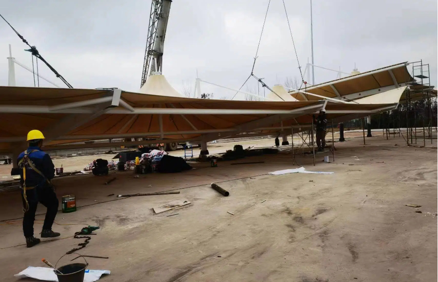 綿陽育才中學(xué)膜結(jié)構(gòu)看臺(tái)工程進(jìn)展