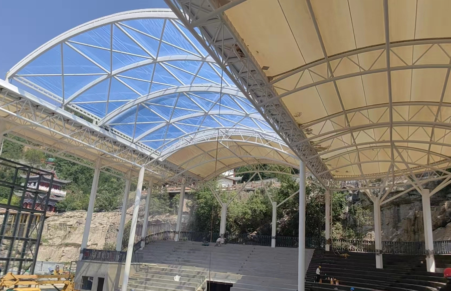 嵐皋村BA籃球場膜結(jié)構(gòu)屋頂工程進展